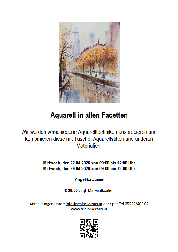 Im Frühling 2026 biete ich wieder einen Kurs im Schlosserhus Rankweil an.